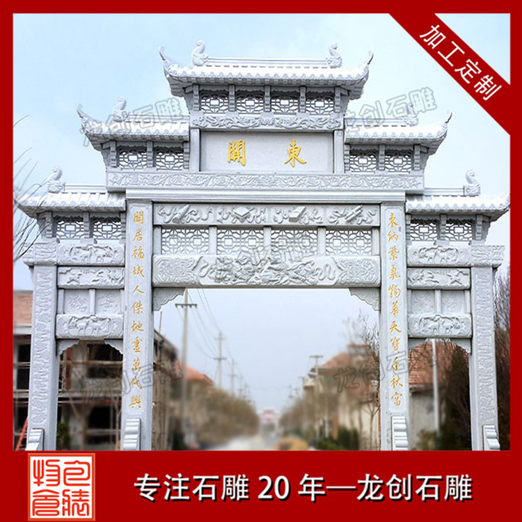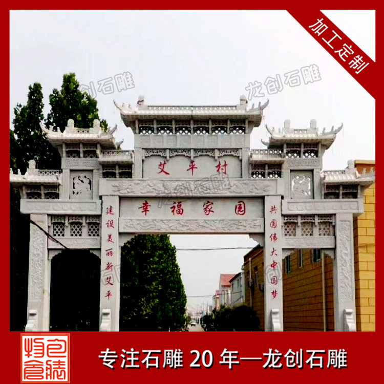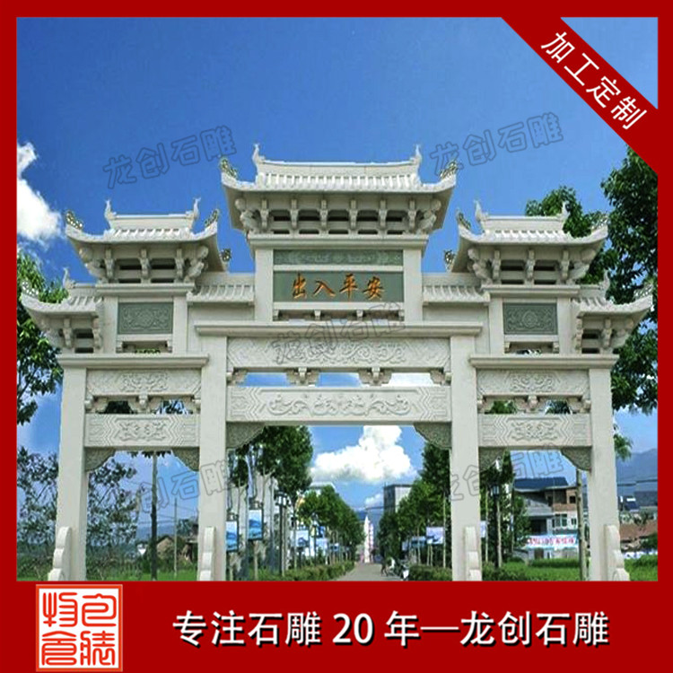 村头石牌楼作为提高乡村品牌形象的关键工程建筑,乡村安装的村子石牌楼村牌楼通常全是以简易大气的主导,例如某些这门1楼或3楼或三门3楼式的牌楼,由于这种牌楼的工程造价成本费也不高,适合乡村石牌楼的手工雕刻安装,这都是许多乡村能够接纳的缘故。手工雕刻精致的村头石牌楼,从侧边体现出了,大家的人生目标,对家中祈祷安全、期盼人生道路荣华富贵、祈祷身体健康的吉祥如意意识。